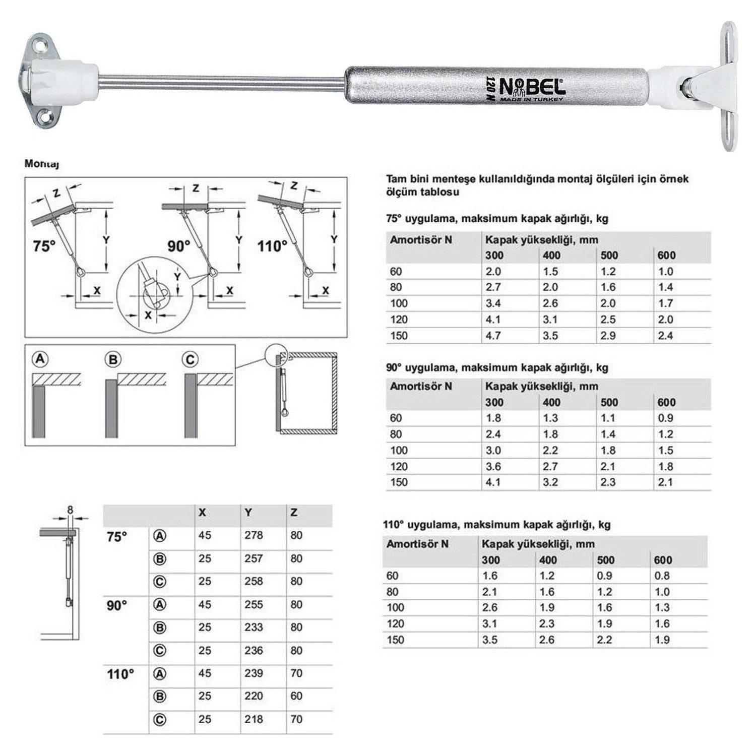 - Dolap kapakları için kullanılan gazlı dolap amortisörüdür.